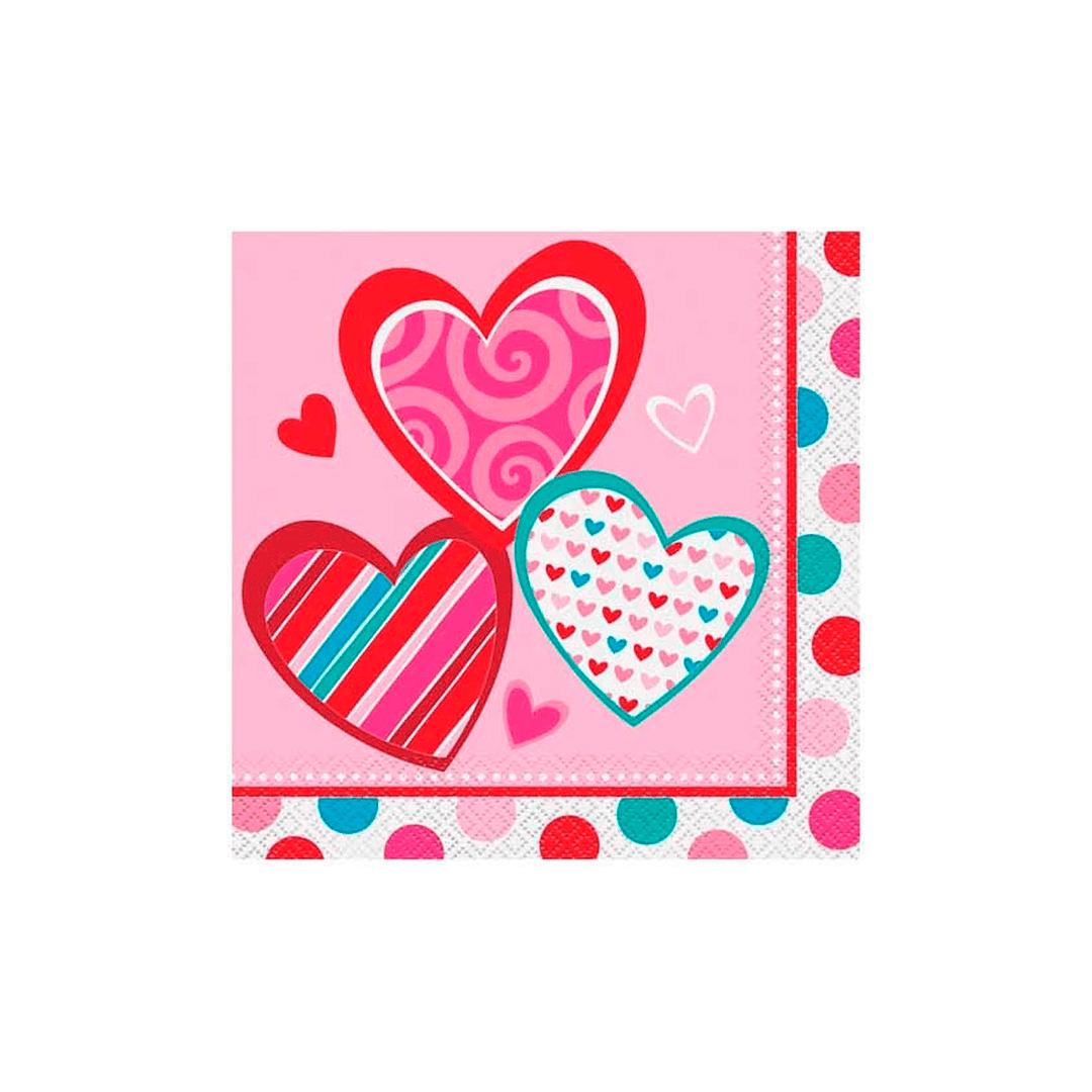 Servilletas de papel únicas con corazones brillantes, 6.5 x 6.5 pulgadas, 16 unidades, 13 x 13 pulgadas, multicolor