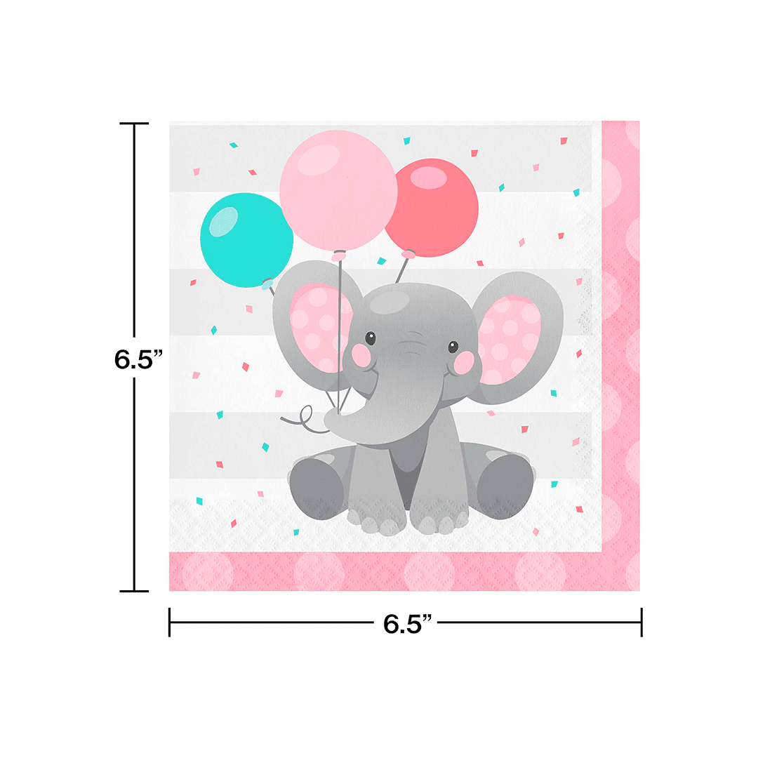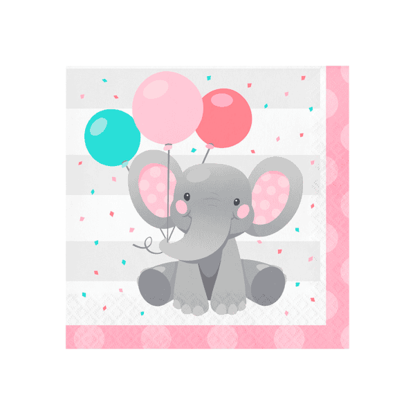 Servilletas grandes de elefantes para niña, 16 unidades