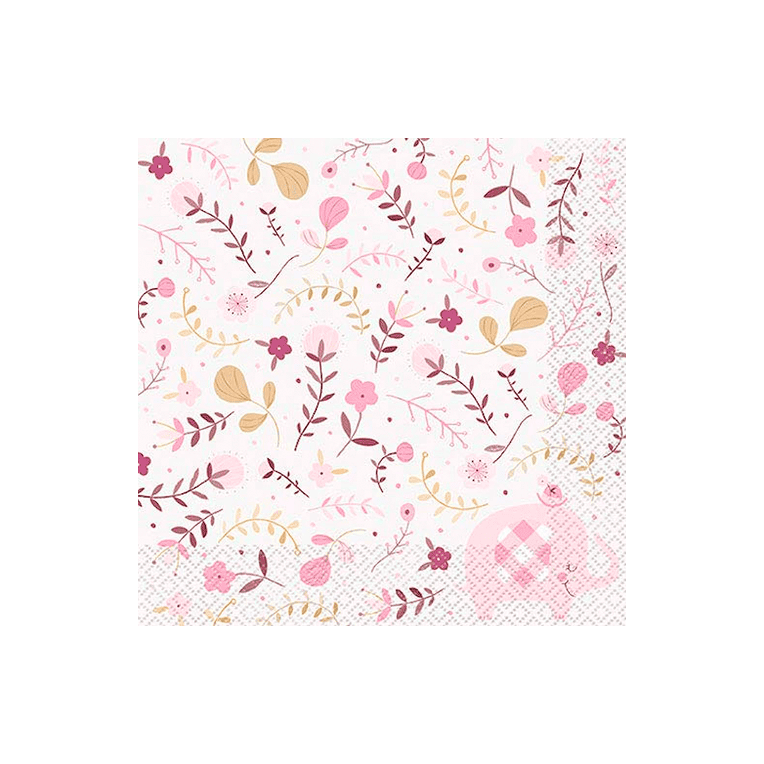Servilletas de almuerzo de elefante floral rosa (16 unidades) – perfectas para baby showers.