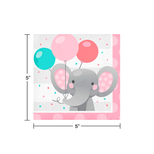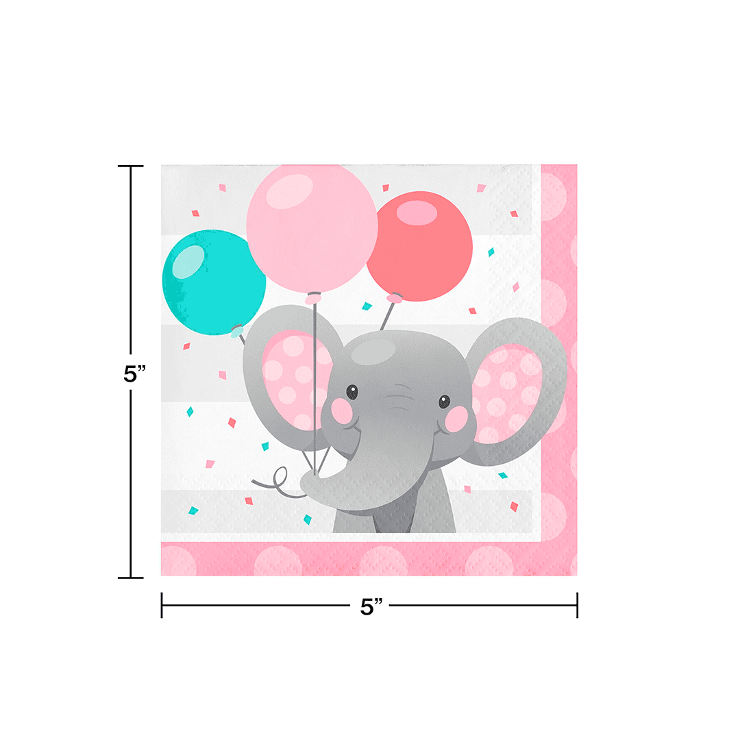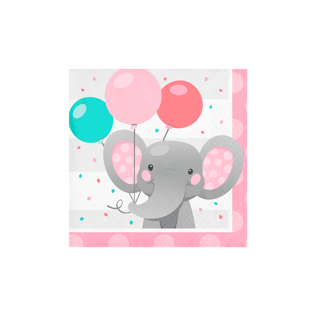 Servilletas encantadoras de elefantes para niñas, 16 unidades