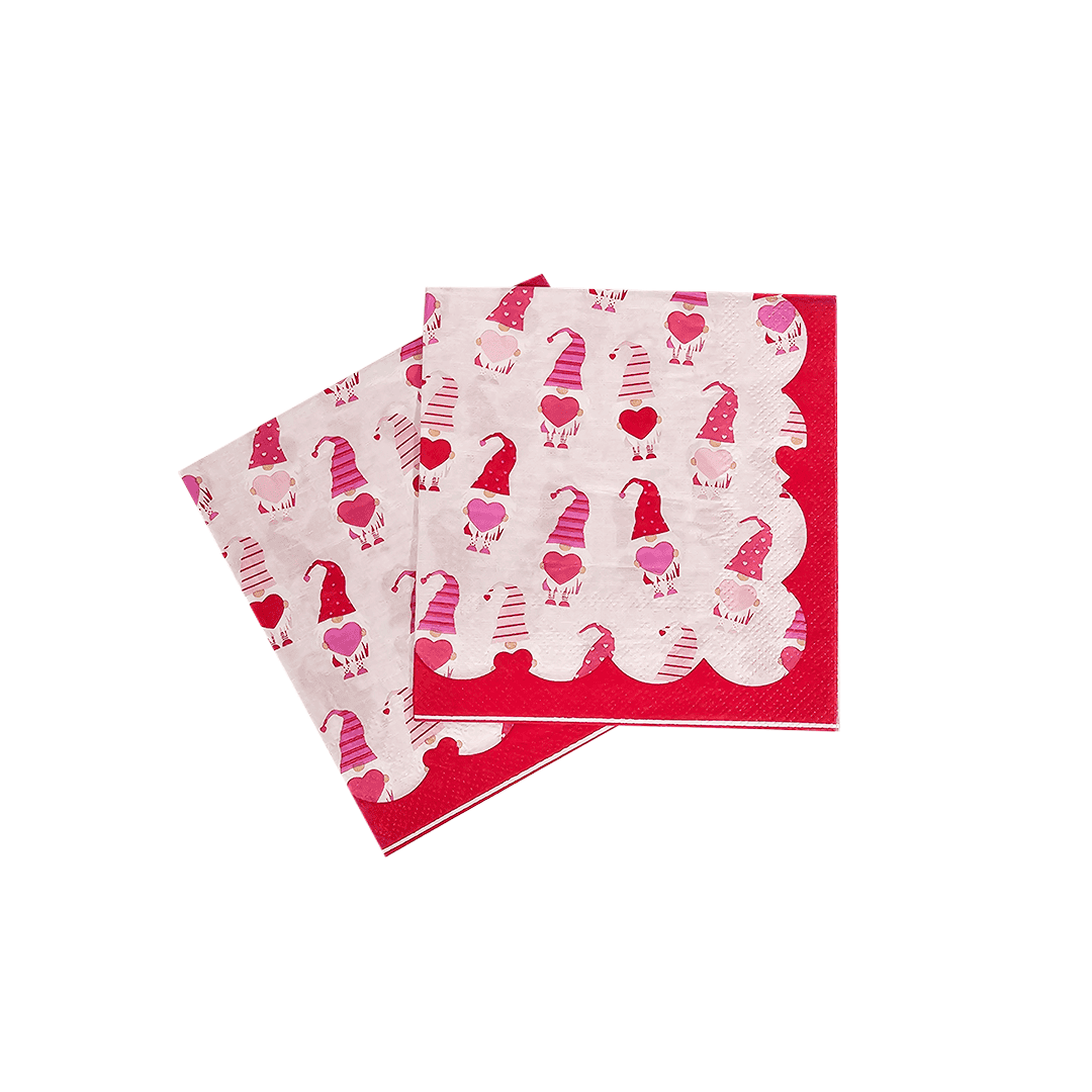 Servilletas pequeñas con diseño de gnomo. Paquete de 20 unidades.