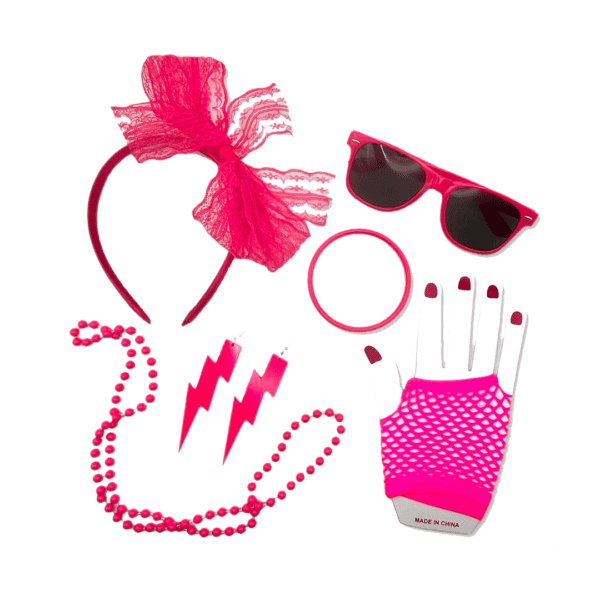 Set de accesorios rosados estilo años 80 para adulto