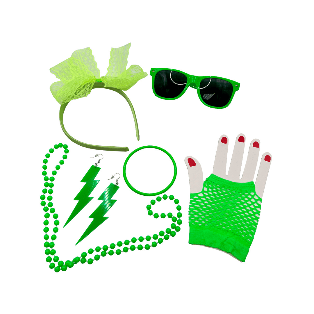 Set de accesorios verdes estilo años 80 para adulto
