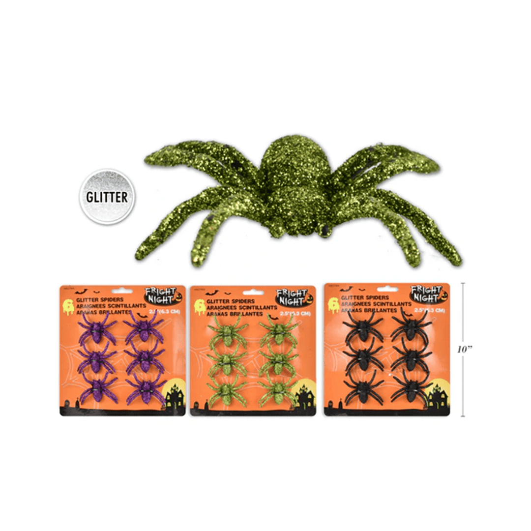 Arañas con brillantina, 6 por paquete. Tamaño de 2,5″. Nota: Este producto es de presentación surtida, por lo que podrías recibir cualquiera de sus variaciones. Si prefieres un diseño específico, indícalo en tu pedido; se enviará según disponibilidad.