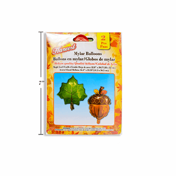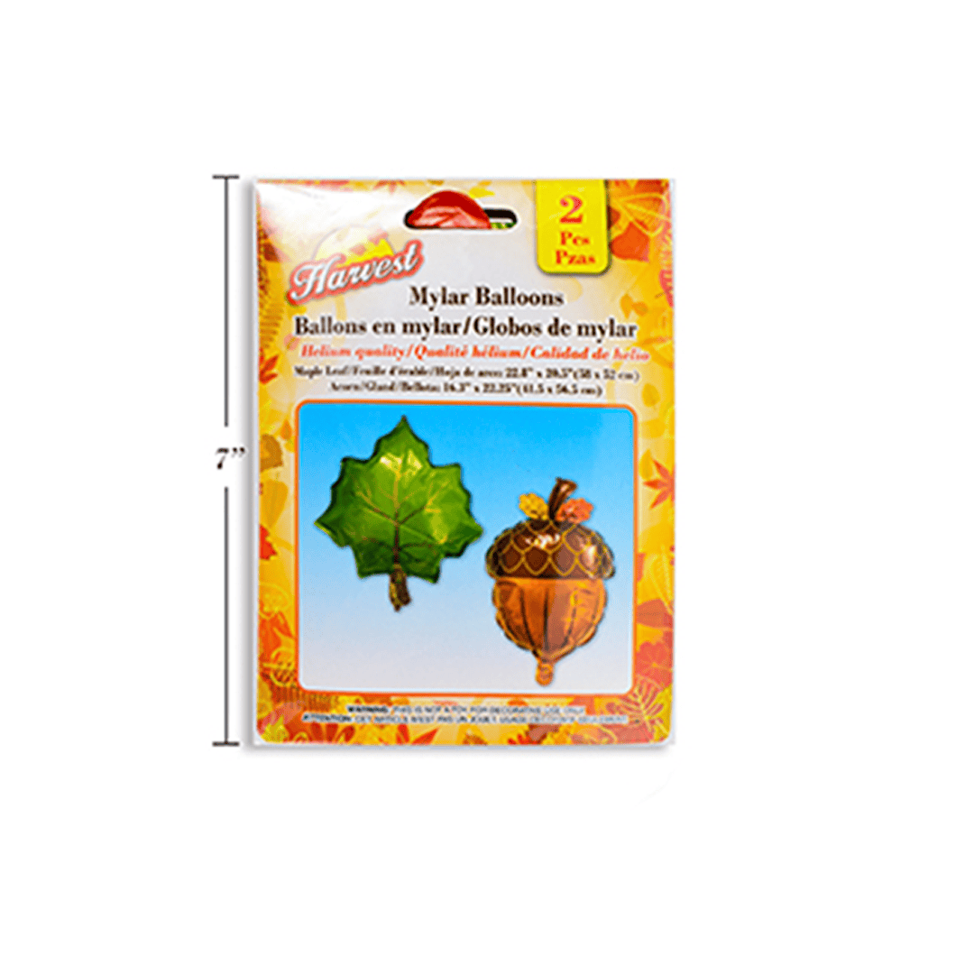 Paquete de 2 globos de Mylar con diseño de cosecha. Aptos para helio. 2 estilos disponibles. Nota: Este producto es de presentación surtida, por lo que podrías recibir cualquiera de sus variaciones. Si prefieres un diseño específico, indícalo en tu pedido; se enviará según disponibilidad.