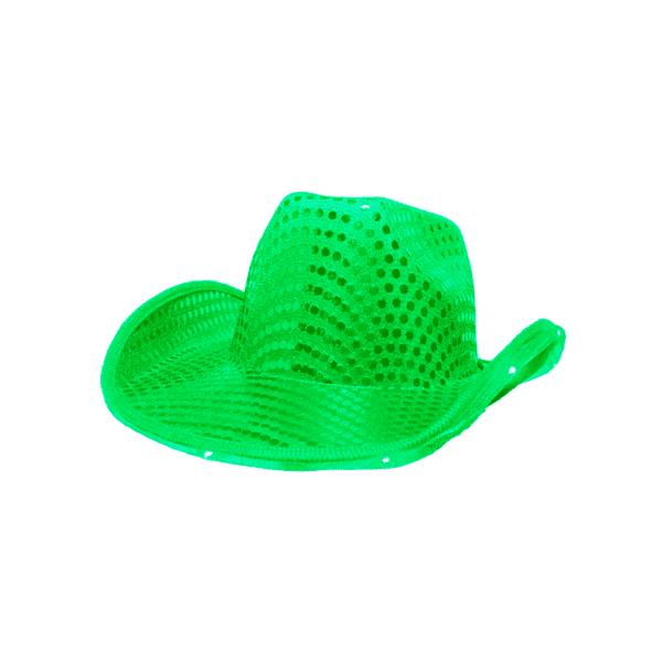 Sombrero de vaquero LED de lentejuelas verdes, no incluye baterías.