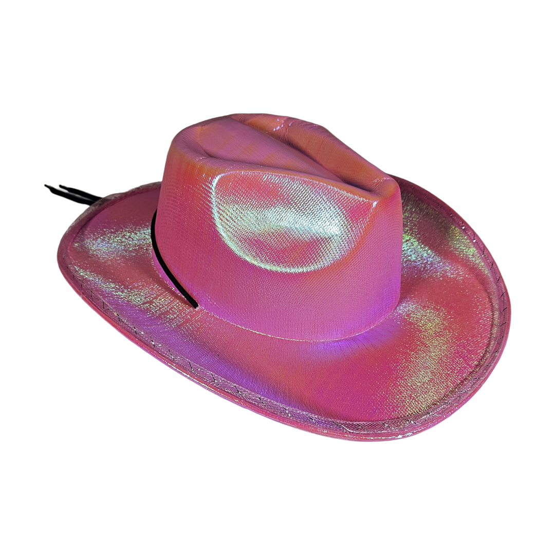 Sombrero temático: Sombrero de vaquero rosa brillante. accesorio para disfraces o fiestas.