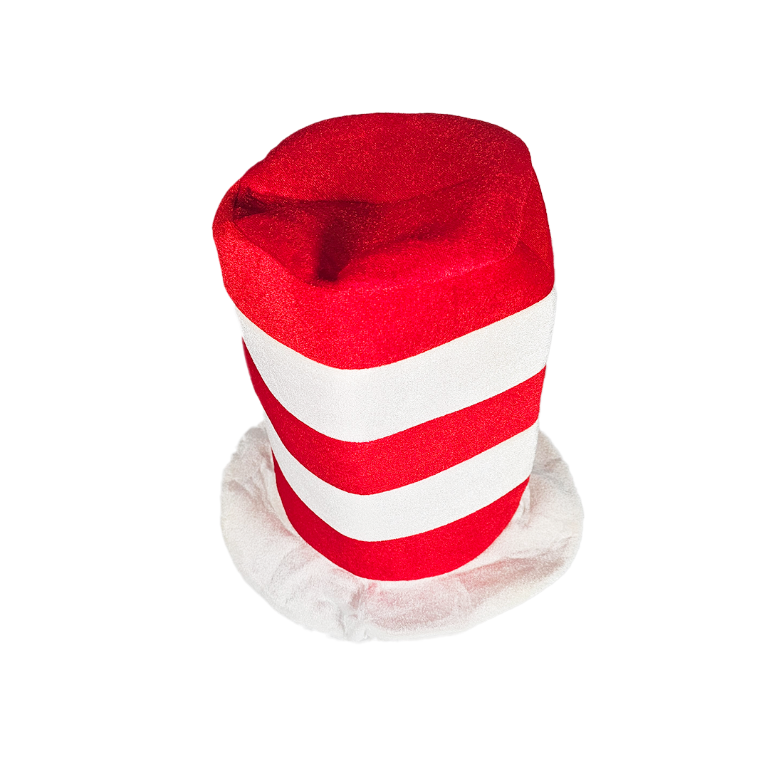 Sombrero tipo Dr. Seuss. de El gato en el sombrero complemento para disfraz o vestimenta temática.