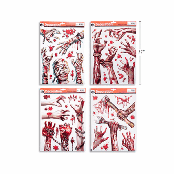 Stickers de zombi sangriento de Halloween. Nota: Este producto es de presentación surtida, por lo que podrías recibir cualquiera de sus variaciones. Si prefieres un diseño específico, indícalo en tu pedido; se enviará según disponibilidad.