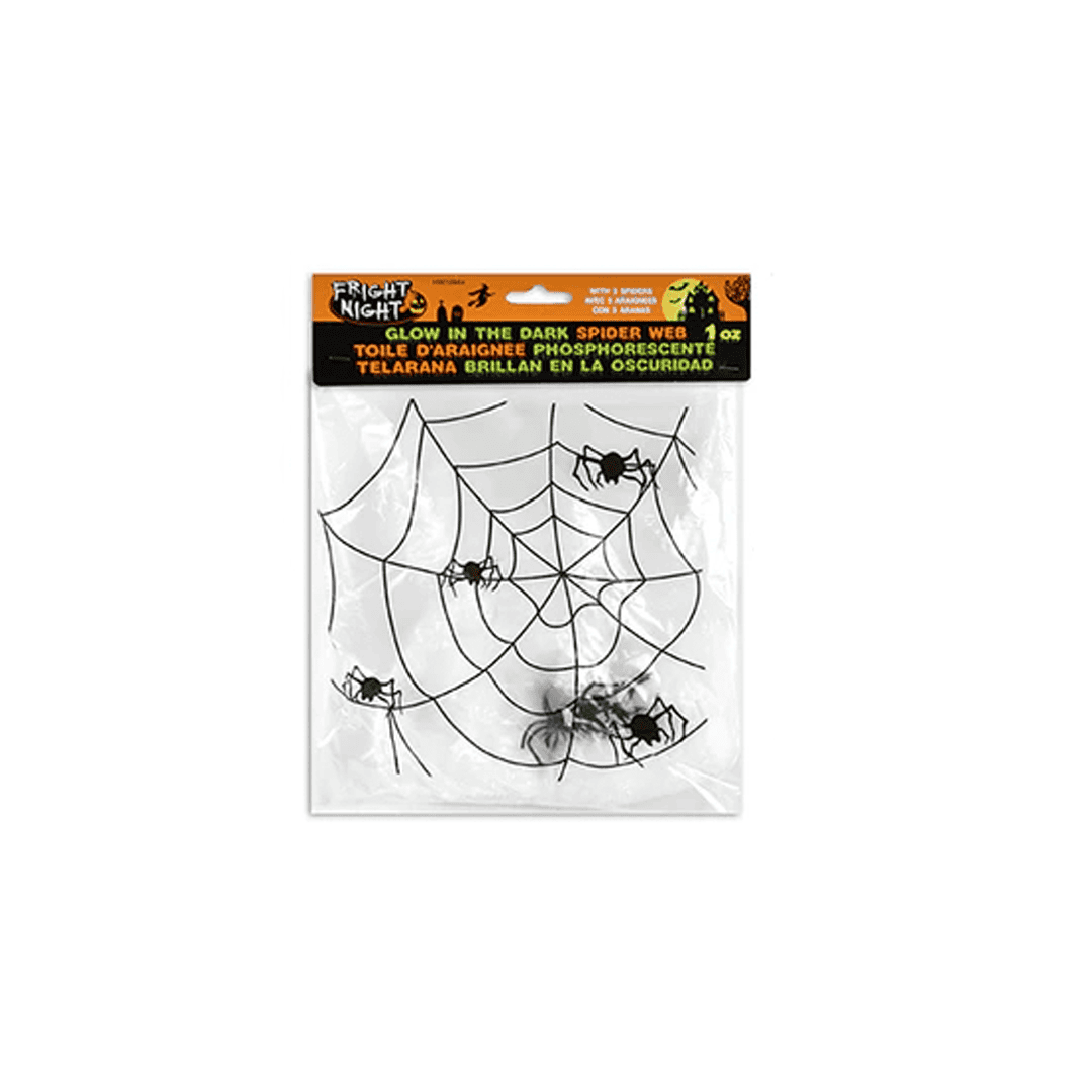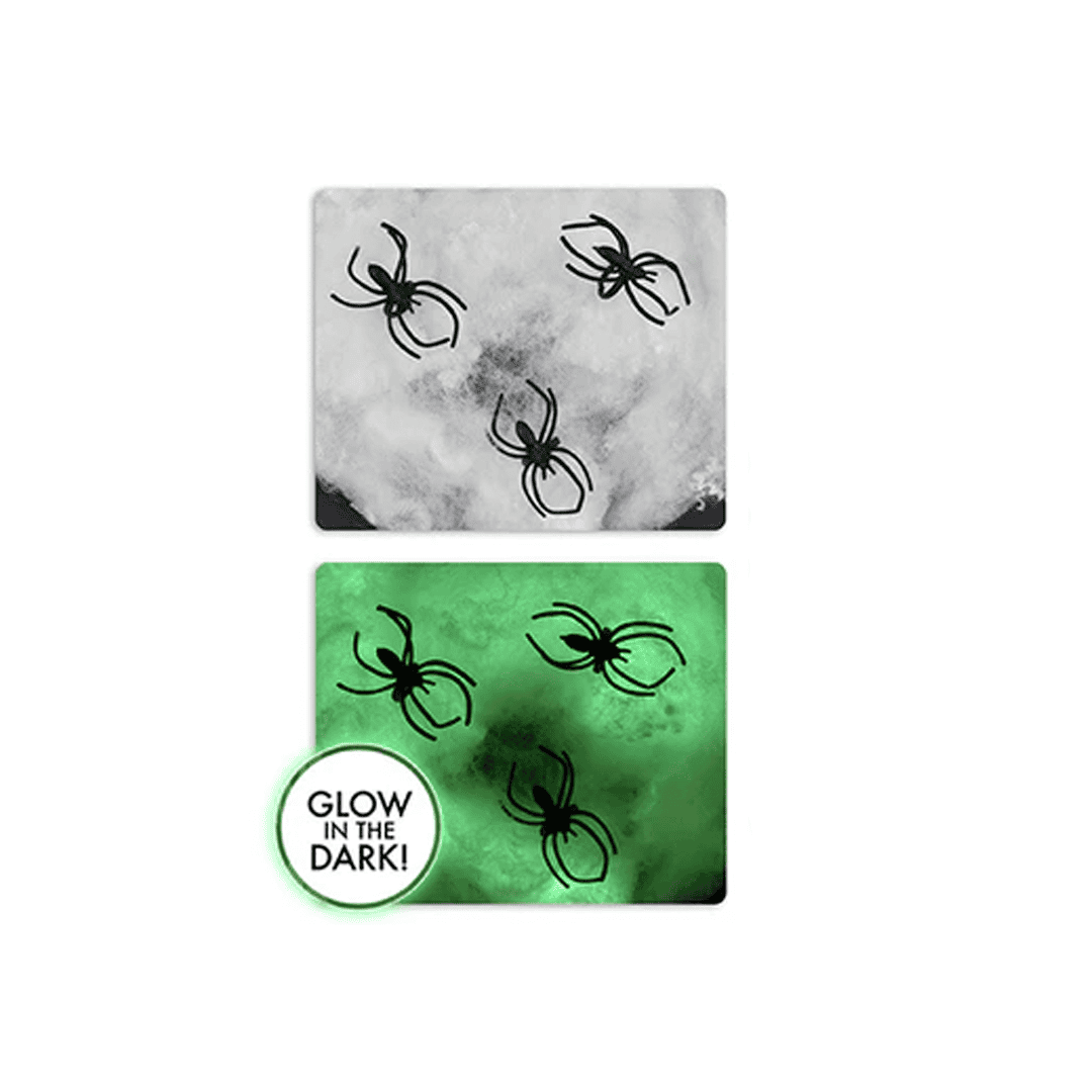 Esta telaraña fluorescente con 3 arañas. Brilla en la obscuridad. 28 g.