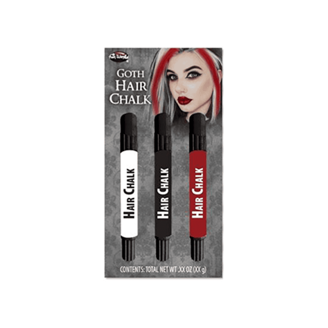 Tiza para el cabello, paquete de 3 unidades, incluye color blanco, negro y rojo.