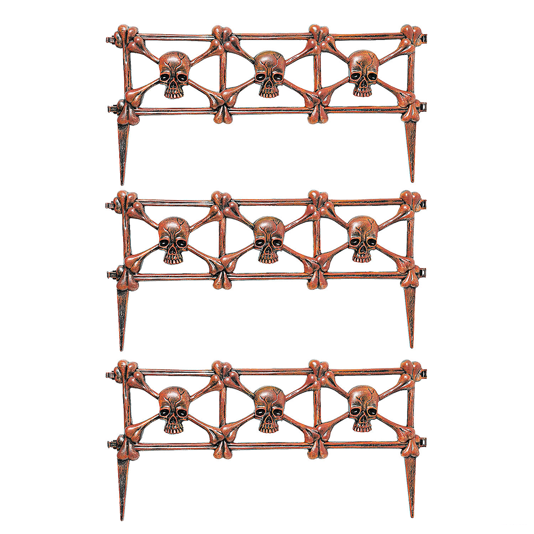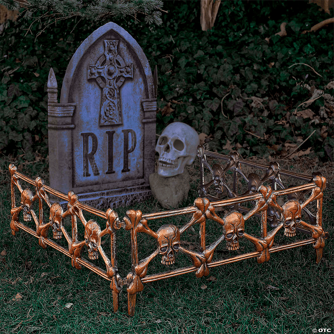 Valla de plástico para cementerio con forma de calavera de Halloween, cada sección mide 56 cm de ancho x 28 cm de alto. ¡Montaje sencillo!