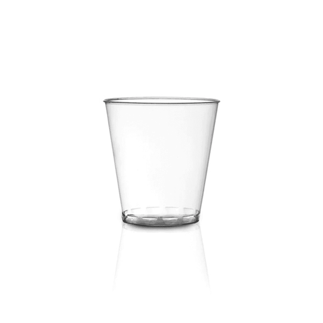 Vaso plástico, transparente de 2 Oz, paquete de 10 unidades.