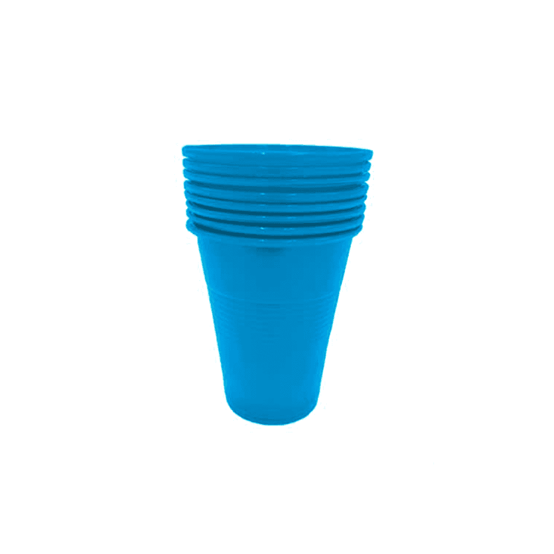 Vaso 9pz Plástico color azul claro, paquete de 8 unidades.