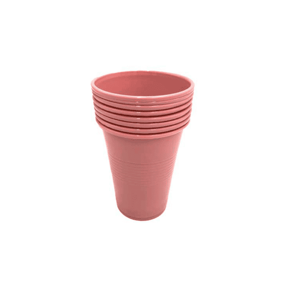 Vaso 9pz Plástico color rose gold, paquete de 8 unidades.