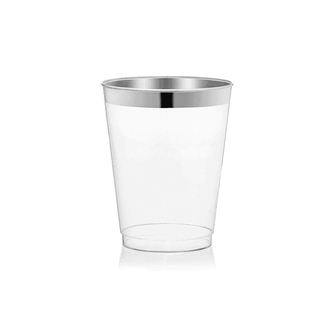 Vaso transparente con plateado 10oz, paquete de 10 unidades.