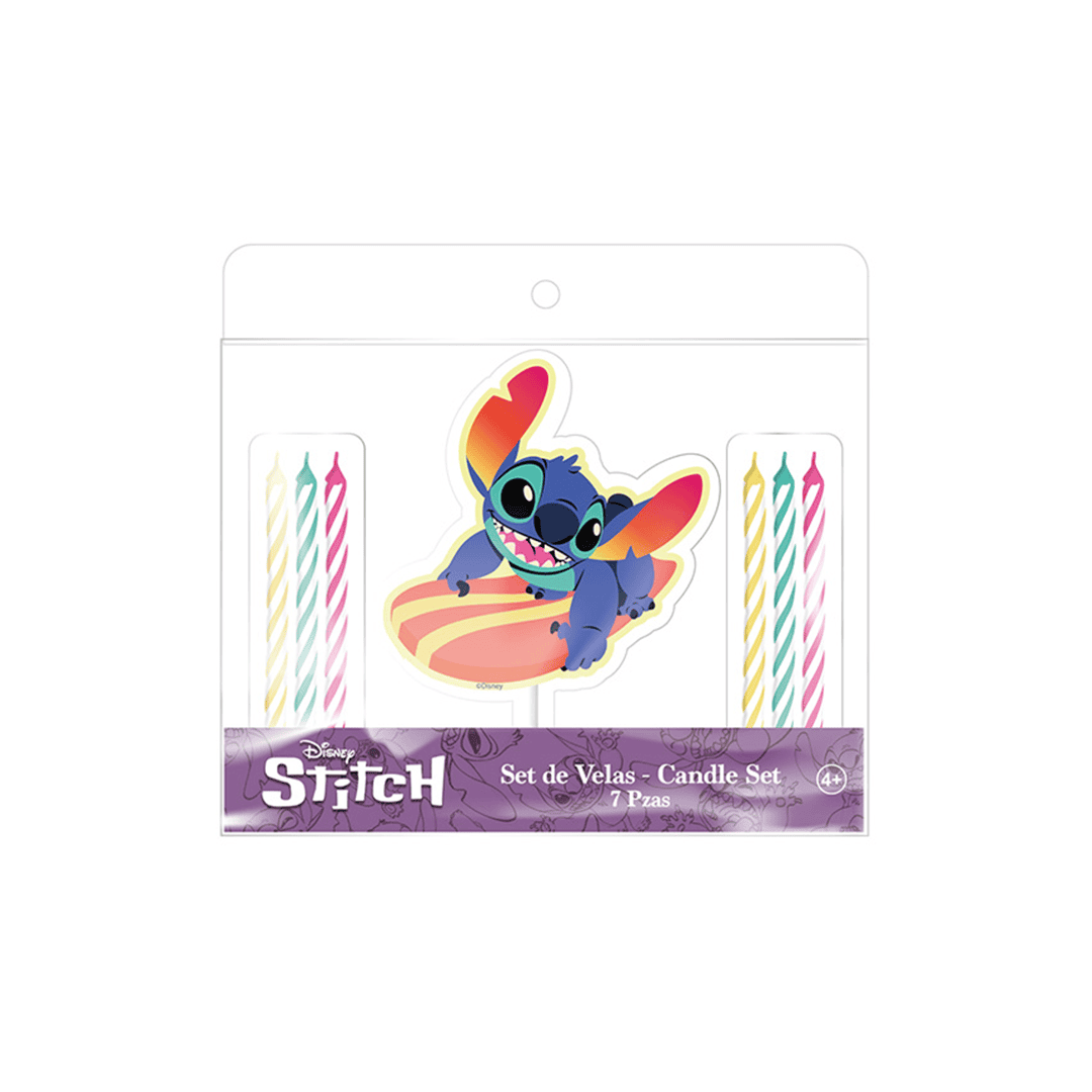 Vela Stitch paquete de 7 unidades. Diseño 2D de Stitch.